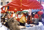 ![]() ミニ屋台街など、材料を持って行くと南京町屈指のコックが即興で料理を作るコーナーなど、南京町の屋台な一日。 <南京町の誕生> 南京町の誕生は、明治元年、神戸港開港の年といわれるから、今からざっと120年前。その頃、外国人居留地が海岸地帯に設けられていたが、当時清国が日本と非条約国であったため、中国人は居留地に住む事が出来ず、西側に隣接する元町の南に居住を構えた。以来このあたり一帯が、雑貨商、豚肉商、飲食店、漢薬店など、各種の店舗が軒を並べ、このほか洋服職、船員など雑業の職人達が雑居して、中国人の町のようになったことから南京町と呼ばれるようになった。 昭和初期には世界各国の珍品が揃い、「南京町に行けば何でもある」と評判になり、全国各地から買い物客が押しかけるまでに賑わうようになった。漢方薬や季節はずれの野菜、果物から豚の肉塊、鮮魚、ニンニクなどの匂いが混合し独特のムードに溢れた。 その後、昭和20年の空襲で大打撃を受けてしまうが、昭和52年には「南京町を復活させよう」と、残った地元の商店主たちが「南京町商店振興組合」を設立、昭和56年には再興プランがまとまり、東と南に楼門、広場にはあづまやが建ち、日本の中の中華街として戦前をしのぐ繁栄を取り戻し、特に春節祭(旧正月)の龍踊りは、全国的に南京町の名を高らめた。 (資料提供:南京町商店街振興組合) |